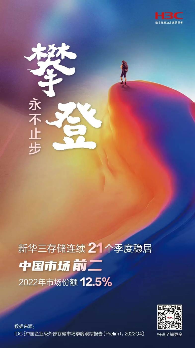 近日(rì),IDC發布《中國企業級外部存儲市場季度跟蹤報告(Prelim),2022Q4》。報告顯示,2022年(nián)第四季度紫光(guāng)股份旗下新華三集團以11.9%的市場份額位列中國企業級外部存儲市場第二,2022年(nián)全年(nián)新華三中國存儲市場份額達12.5%。截止目前,新華三存儲已連續21個季度穩居中國市場前二,充分(fēn)彰顯了新華三在存儲領域的絕對産品優勢以及市場的高度認可(kě)。